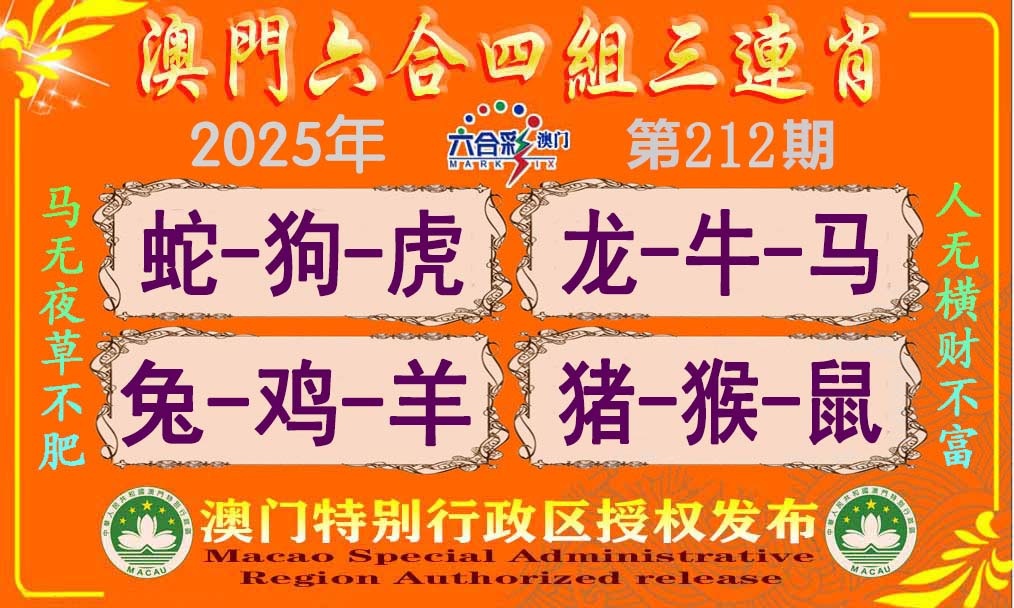 212期四組三連肖